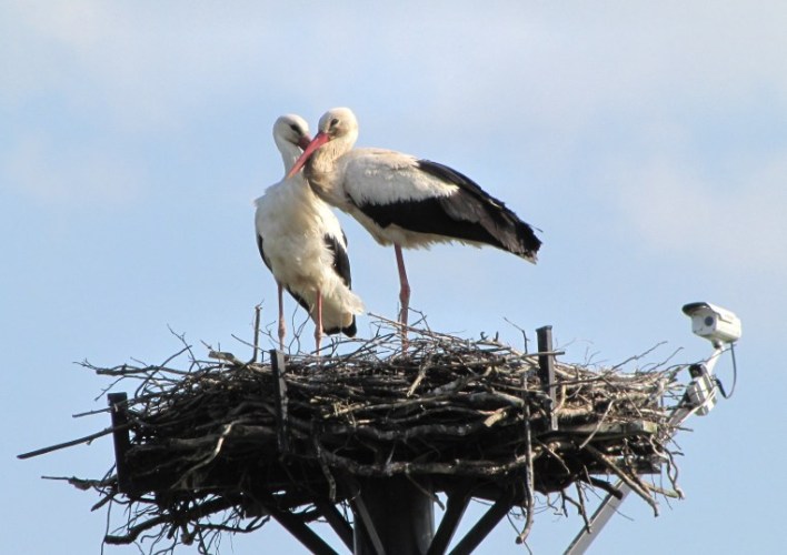 In 2012, the storks appeared on the nest quite late, only on May 3. Unfortunately, with storks, you can never be 100% sure if it's the same pair as the previous year. The storks set about finishing work on the nest, but again there was no breeding. It was pleasant once again to watch such beautiful birds flying over our heads.